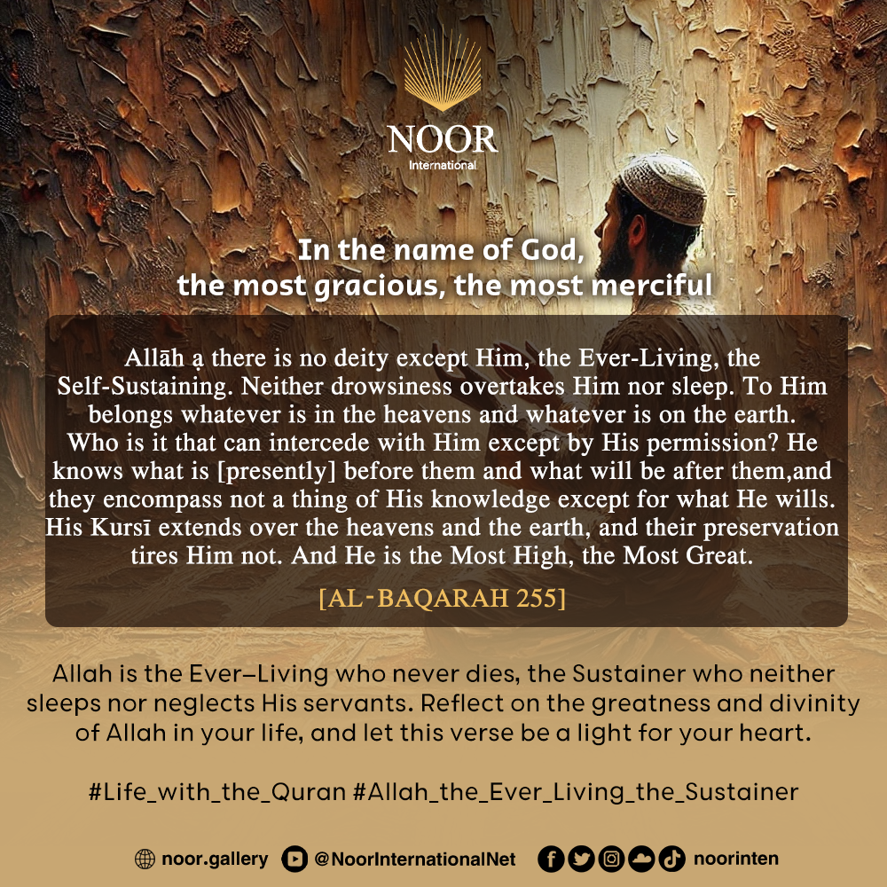 Allah is the Ever-Living who never dies, the Sustainer who neither sleeps nor neglects His servants. Reflect on the greatness and divinity of Allah in your life, and let this verse be a light for your heart. #Life_with_the_Quran #Allah_the_Ever_Living_the_Sustainer