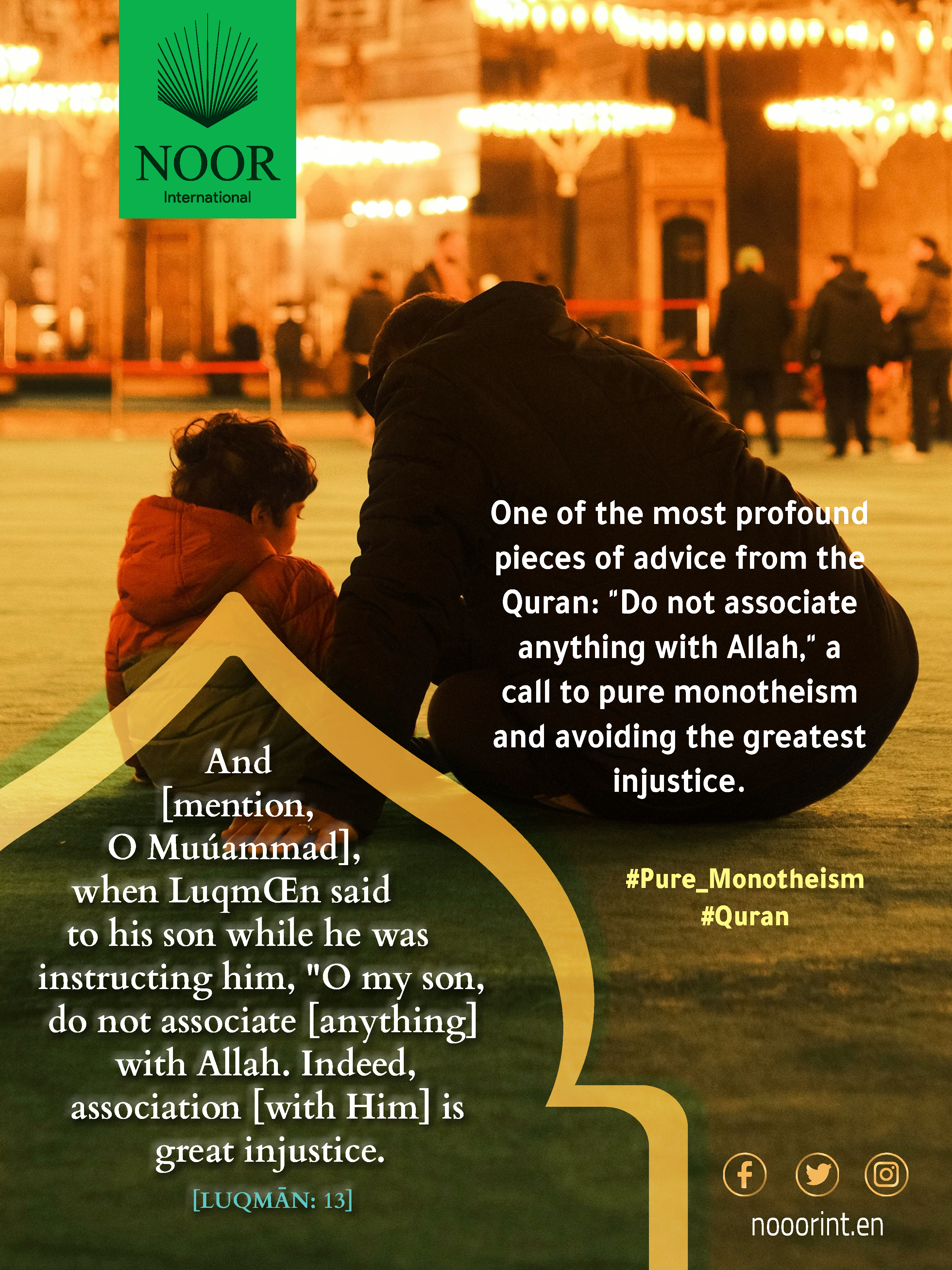 One of the most profound pieces of advice from the Quran: "Do not associate anything with Allah," a call to pure monotheism and avoiding the greatest injustice. #Pure_Monotheism #Quran