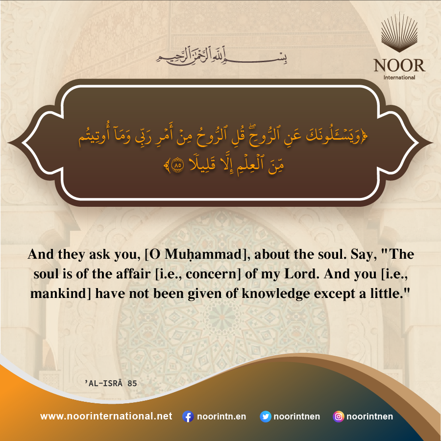 And they ask you, [O Mohamed], about the soul. Say, "The soul is of the affair [i.e., concern] of my Lord. And you [i.e., mankind] have not been given of knowledge except a little."