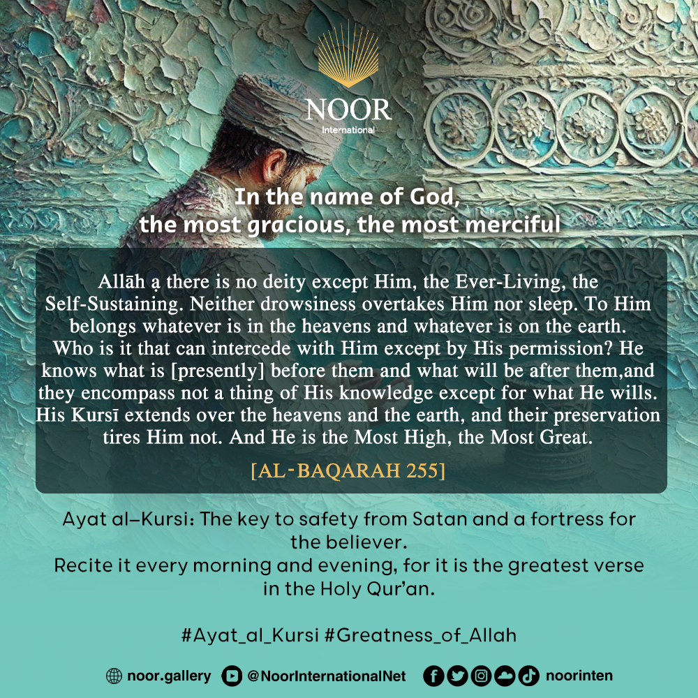 Ayat al-Kursi: The key to safety from Satan and a fortress for the believer. Recite it every morning and evening, for it is the greatest verse in the Holy Qur'an. #Ayat_al_Kursi #Greatness_of_Allah