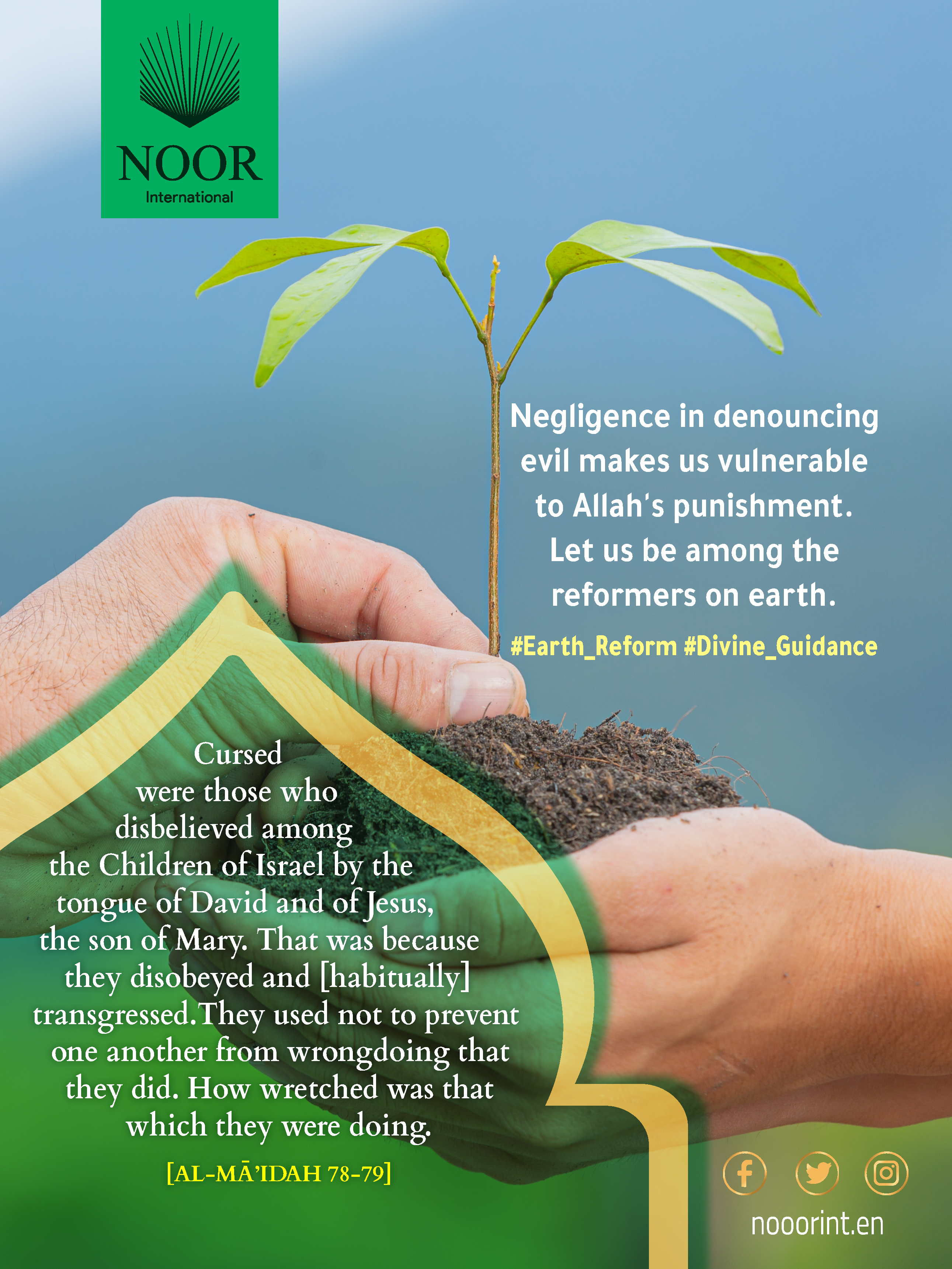 Negligence in denouncing evil makes us vulnerable to Allah's punishment. Let us be among the reformers on earth. #Earth_Reform #Divine_Guidance