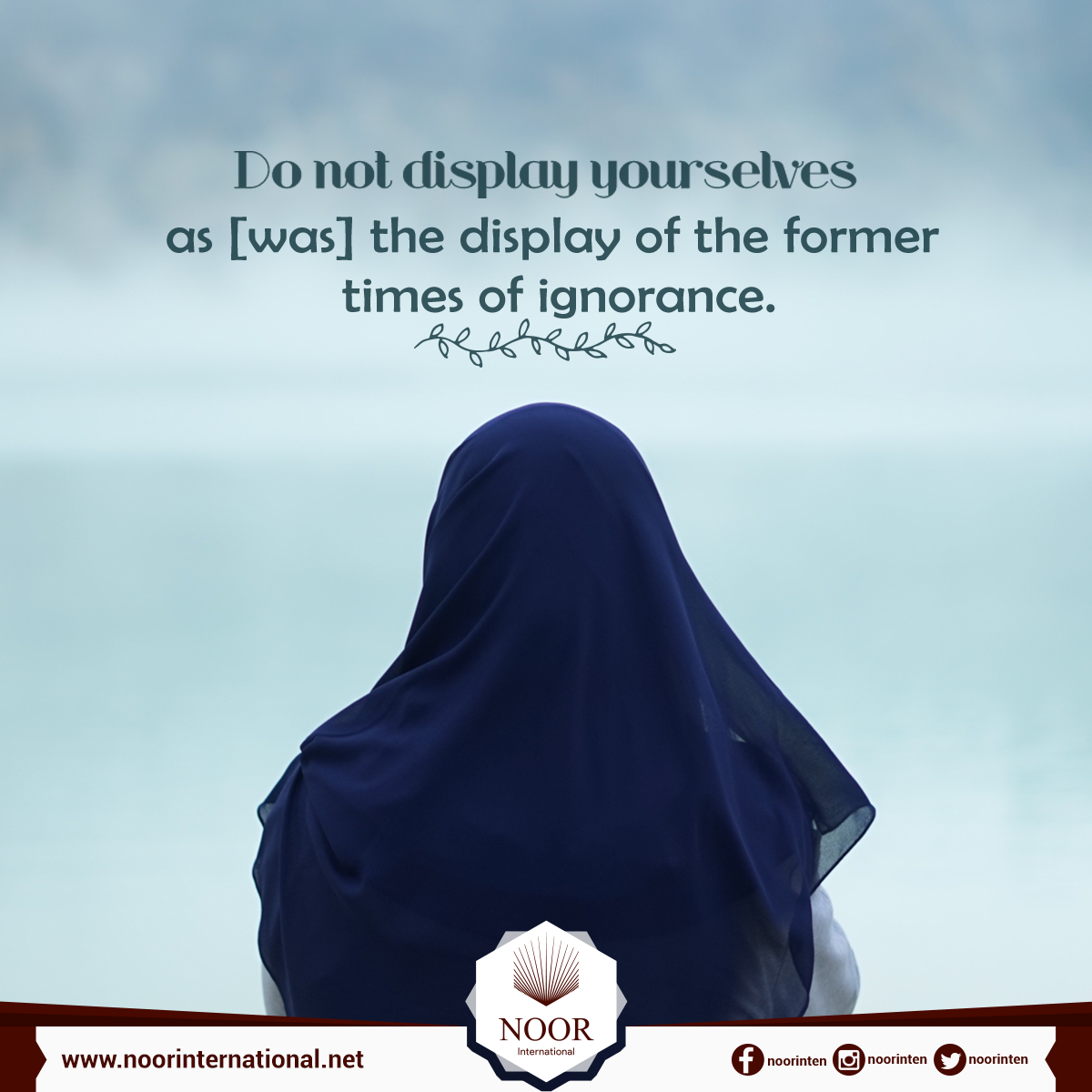 { And abide in your houses and do not display yourselves as [was] the display of the former times of ignorance. And establish prayer and give zakah and obey Allah and His Messenger. Allah intends only to remove from you the impurity [of sin], O people of the [Prophet's] household, and to purify you with [extensive] purification. }