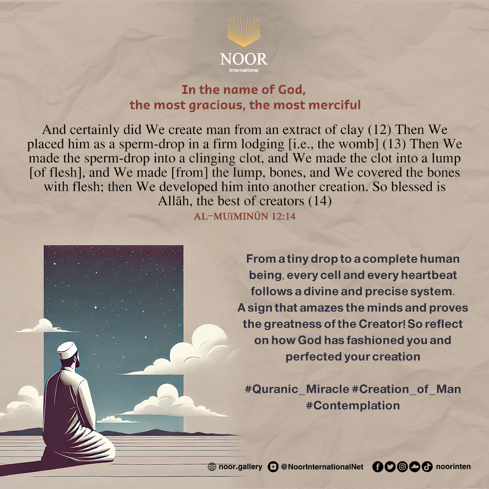 From a tiny drop to a complete human being, every cell and every heartbeat follows a divine and precise system. A sign that amazes the minds and proves the greatness of the Creator! So reflect on how God has fashioned you and perfected your creation!
