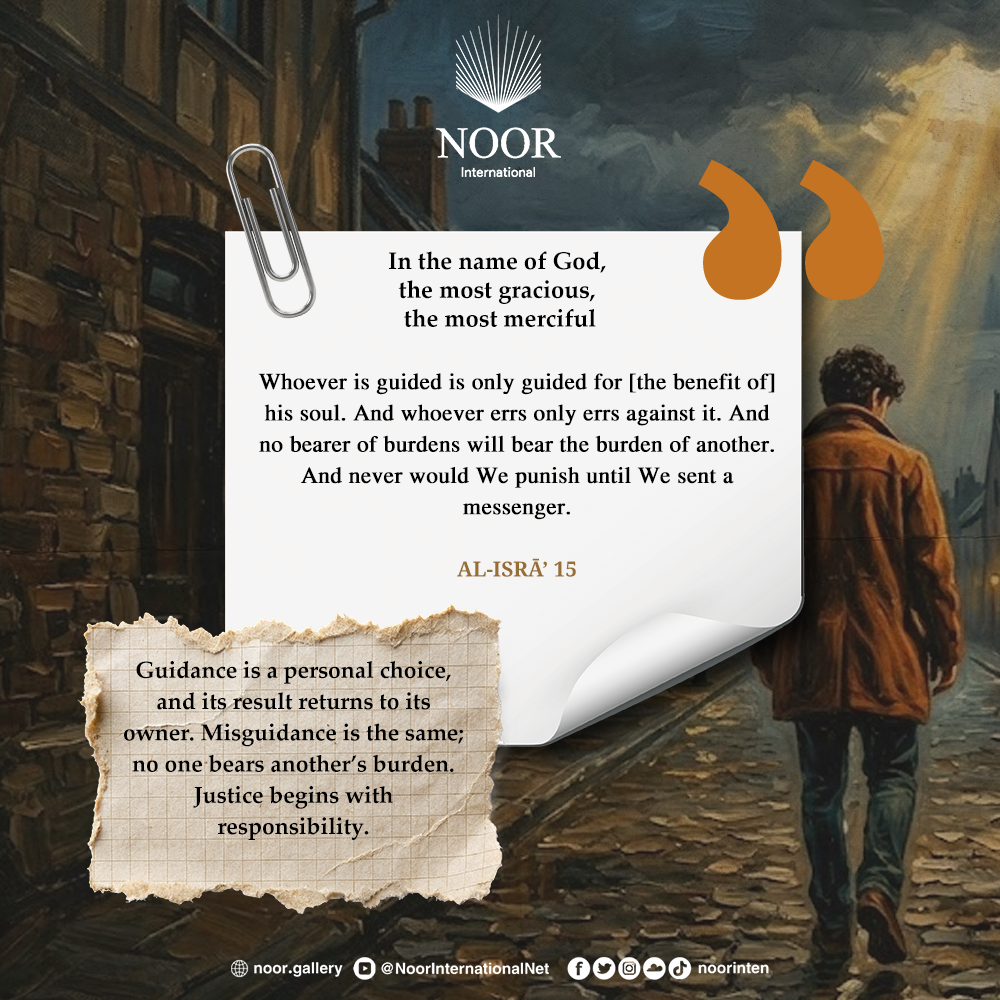 Guidance is a personal choice, and its result returns to its owner. Misguidance is the same; no one bears another’s burden. Justice begins with responsibility. #PersonalResponsibility #Justice #FreedomOfChoice