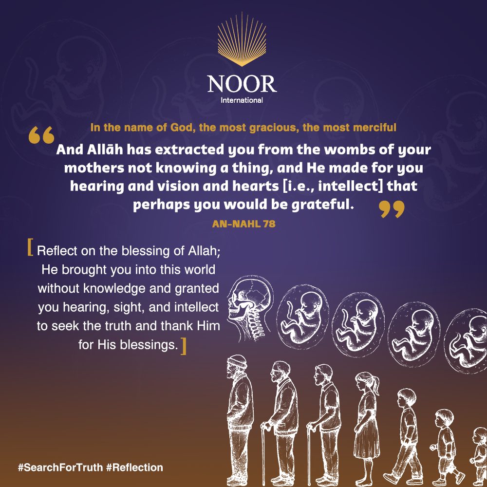 • Reflect on the blessing of Allah; He brought you into this world without knowledge and granted you hearing, sight, and intellect to seek the truth and thank Him for His blessings. #SearchForTruth #Reflection