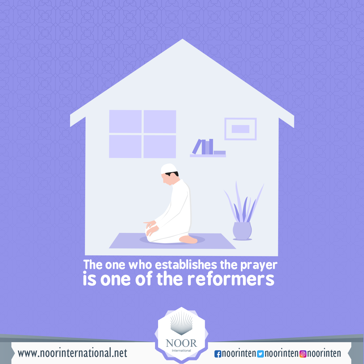 Establishing the prayer calls one to establish the other acts of worship. The one who establishes the prayer is considered of the reformers.