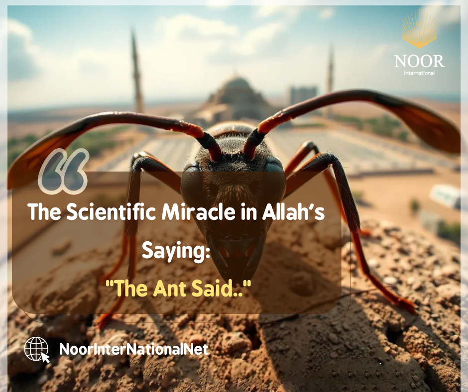 The Scientific Miracle in the Noble Verse The noble verse mentions that the ant spoke, and this was stated more than 1,434 Hijri years ago. We deduce from this that the ant spoke after hearing the descent of Solomon's army, peace be upon him, from the mountain. The ant then began to warn the rest of the ant kingdom of Solomon and his soldiers so that they would not be crushed. The scientific miracle in this noble verse lies in the ant's ability to hear from very long distances and its ability to speak. This occurred at a time when there was no technology capable of determining how the ant heard the approach of Solomon and his soldiers or how and from where the ant spoke. These scientific facts were only discovered recently. For the first time in history, we have been able to locate the ant's hearing organ in its legs, which is a scientific precedent in the Quran. Furthermore, ants can hear ultrasonic waves, which humans cannot. Therefore, as soon as Solomon's army and soldiers descended from the mountain and reached the beginning of the ant valley, the sound of the army, including the soldiers and horses, was transmitted to the ground in the form of sound vibrations. These vibrations traveled through the surface of the earth until they reached the ant's legs, which are covered with numerous sensory hairs that detect ultrasonic waves. The sound frequencies were then transmitted from the sensory hairs to the ant's brain, which translated them into information that Solomon and his soldiers had arrived at the ant valley. Fearing for the rest of the ant kingdom, the ant began to warn the other ants. The fact that ants can speak was only discovered recently. It was discovered that ants speak through organs located on their abdomens. On the surface of the third abdominal segment, there is a structure known as a feather, and on the surface of the fourth abdominal segment, there are closely arranged ice-like protrusions resembling the strings of a musical instrument, known as the file. When ants want to speak, they move the feather on the file, producing different tones with varying frequencies that humans can hear and have been recorded using special devices. Other ants can hear these sounds as well. Therefore, as soon as the ant gave the warning call, all the ants ran into their dwellings, saving themselves from Solomon's army, which consisted of humans, jinn, and birds. This indicates that our Prophet, peace be upon him, received this Quran from the All-Hearing, All-Knowing, and that he, peace be upon him, does not speak from his own desire.