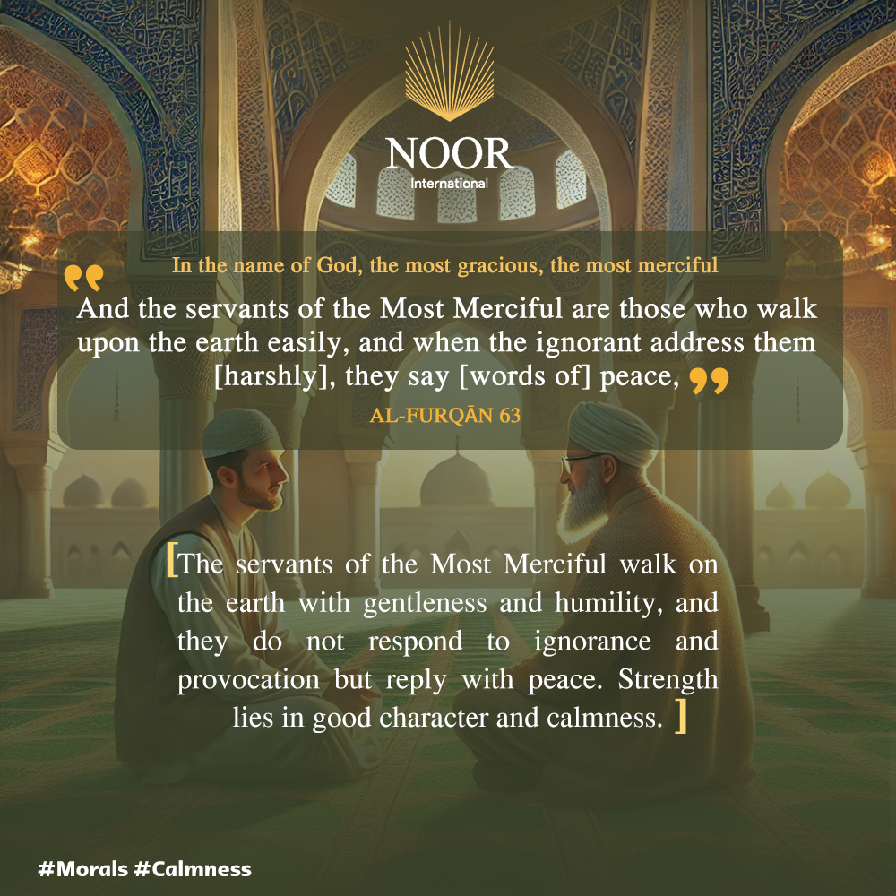 The servants of the Most Merciful walk on the earth with gentleness and humility, and they do not respond to ignorance and provocation but reply with peace. Strength lies in good character and calmness. #Morals #Calmness