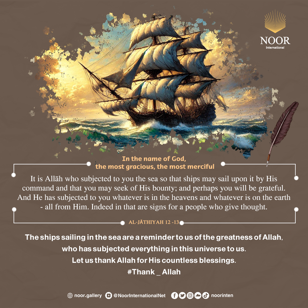 The ships sailing in the sea are a reminder to us of the greatness of Allah, who has subjected everything in this universe to us.