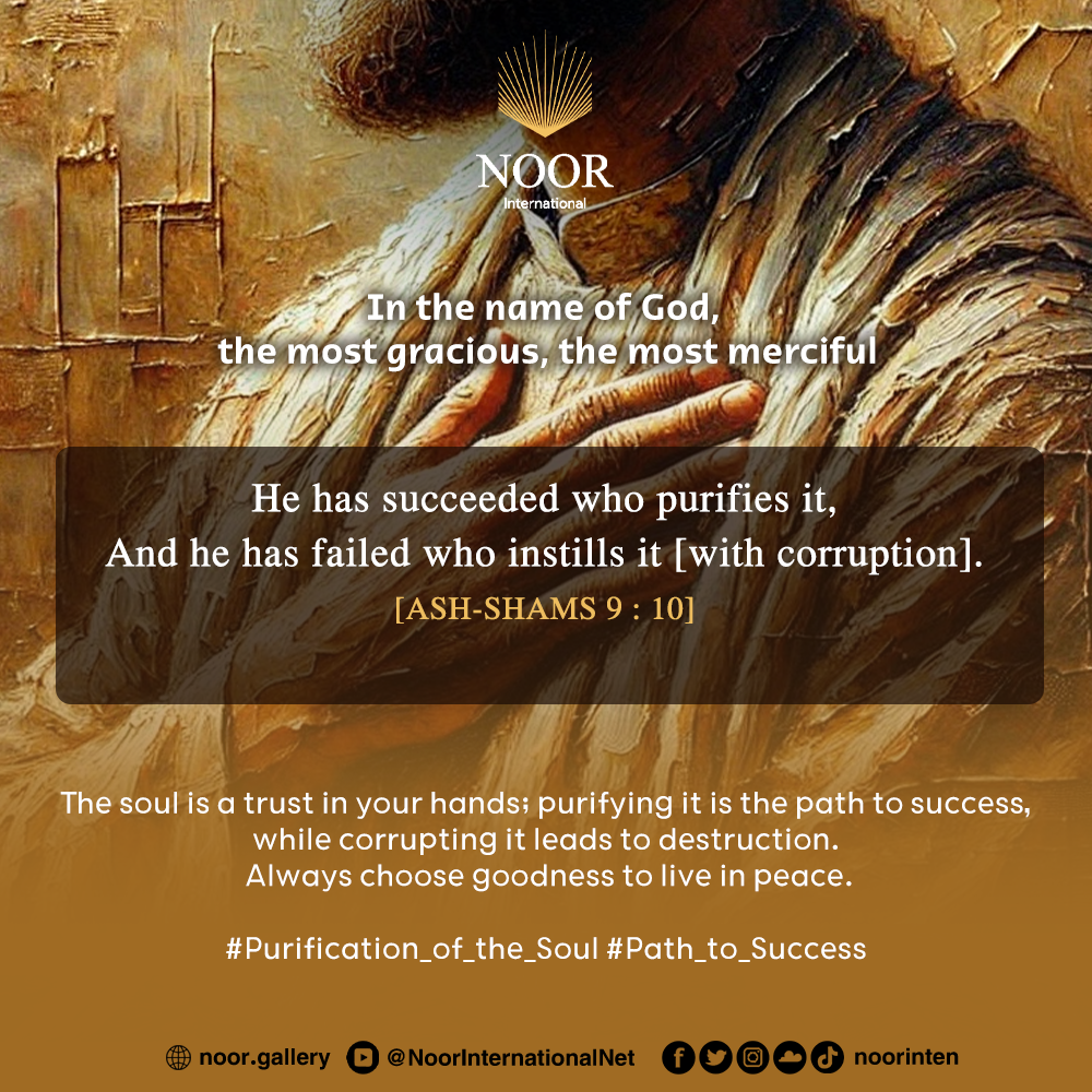 The soul is a trust in your hands; purifying it is the path to success, while corrupting it leads to destruction. Always choose goodness to live in peace. #Purification_of_the_Soul #Path_to_Success