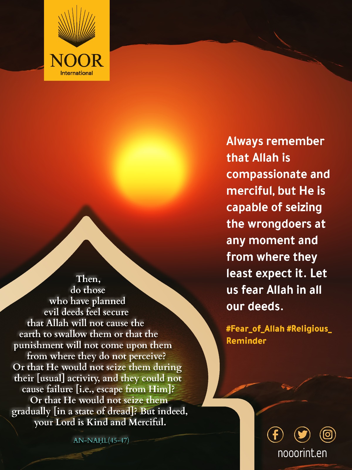 Always remember that Allah is compassionate and merciful, but He is capable of seizing the wrongdoers at any moment and from where they least expect it. Let us fear Allah in all our deeds. #Fear_of_Allah #Religious_Reminder