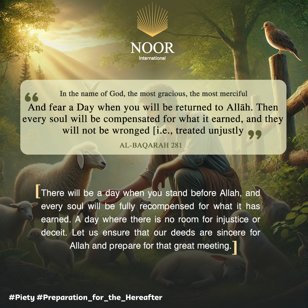 • There will be a day when you stand before Allah, and every soul will be fully recompensed for what it has earned. A day where there is no room for injustice or deceit. Let us ensure that our deeds are sincere for Allah and prepare for that great meeting. #Piety #Preparation_for_the_Hereafter