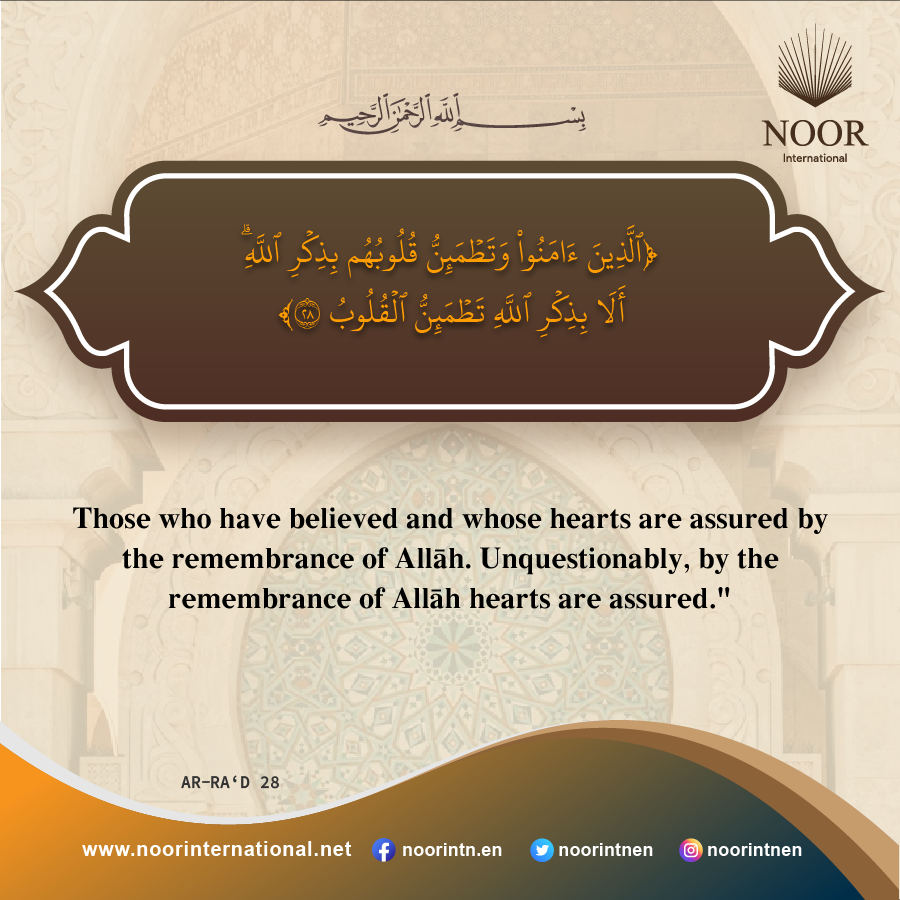 Those who have believed and whose hearts are assured by the remembrance of Allah. Unquestionably, by the remembrance of Allah hearts are assured."