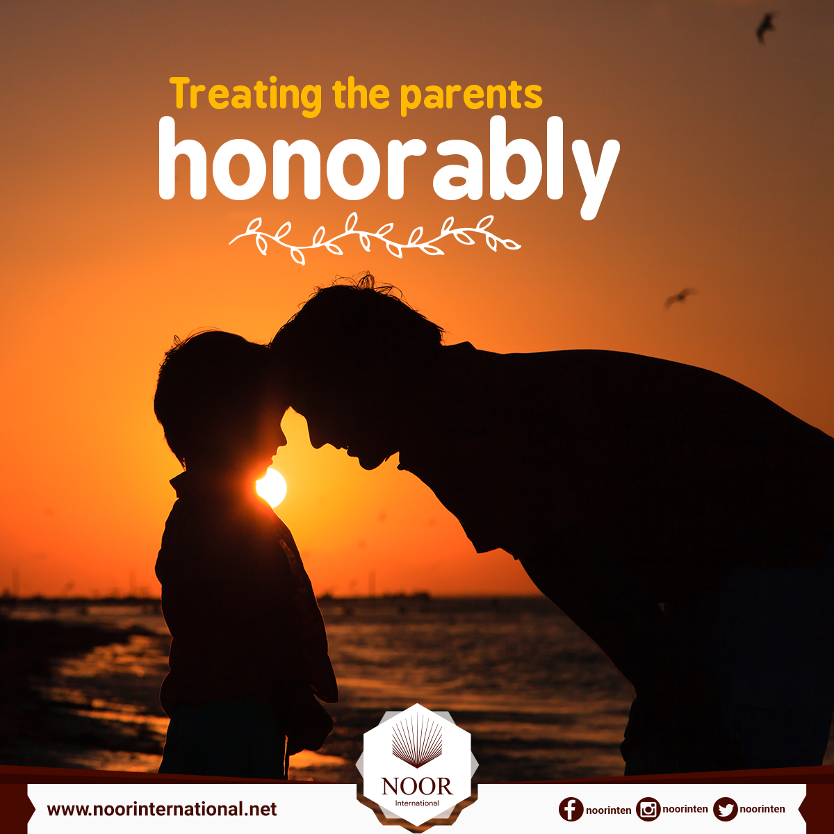 { And your Lord has decreed that you not worship except Him, and to parents, good treatment. Whether one or both of them reach old age [while] with you, say not to them [so much as], "uff," and do not repel them but speak to them a noble word. }