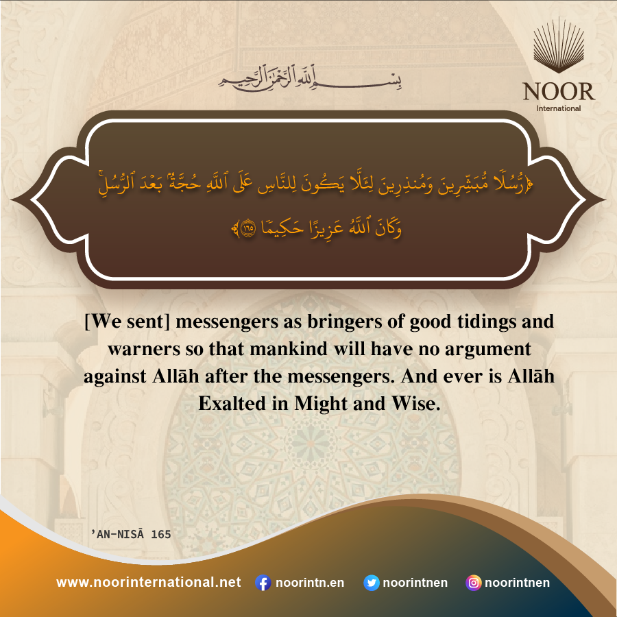 [We sent] messengers as bringers of good tidings and warners so that mankind will have no argument against Allah after the messengers. And ever is Allah Exalted in Might and Wise.