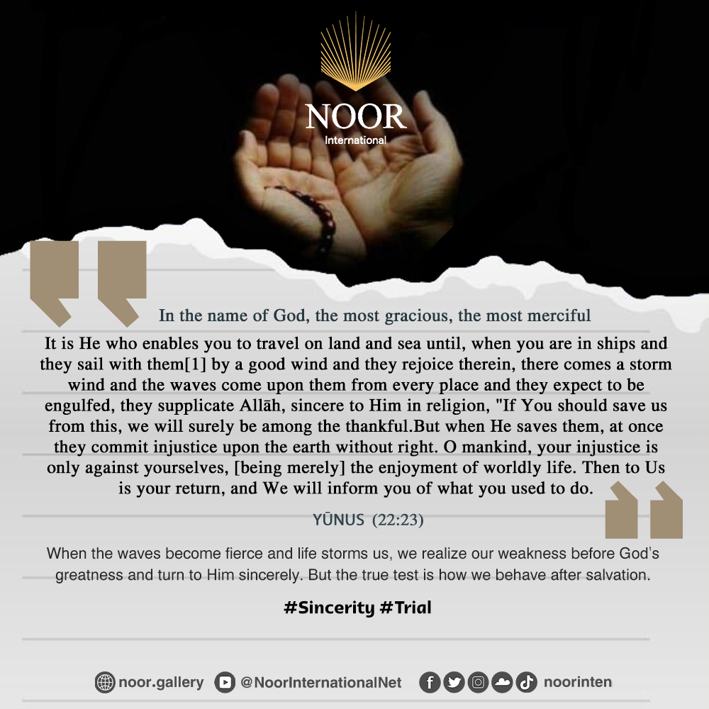 "When the waves become fierce and life storms us, we realize our weakness before God's greatness and turn to Him sincerely. But the true test is how we behave after salvation." #Sincerity #Trial