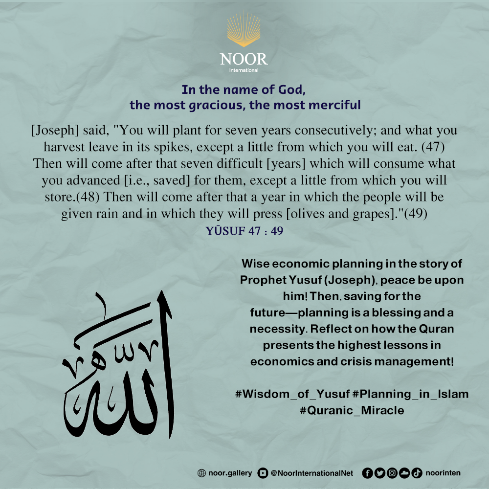 Wise economic planning in the story of Prophet Yusuf (Joseph), peace be upon him! Then, saving for the future—planning is a blessing and a necessity. Reflect on how the Quran presents the highest lessons in economics and crisis management!