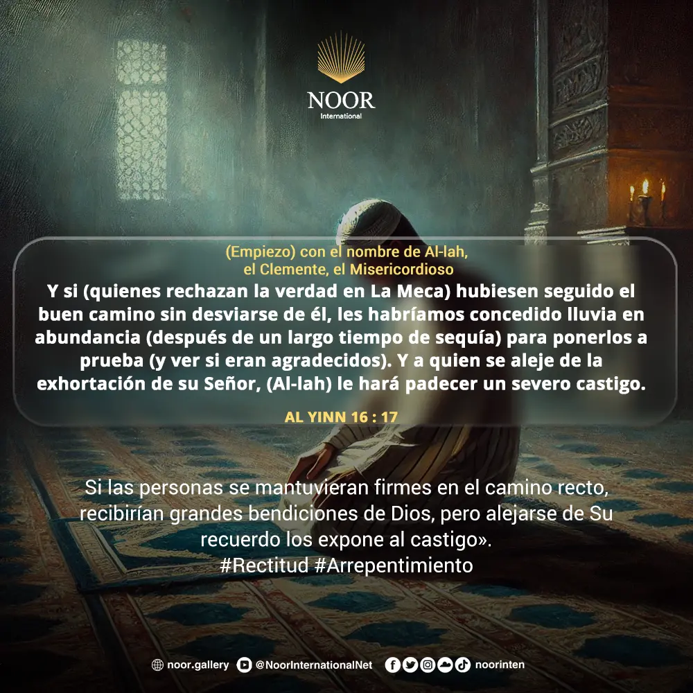 Si las personas se mantuvieran firmes en el camino recto, recibirían grandes bendiciones de Dios, pero alejarse de Su recuerdo los expone al castigo».