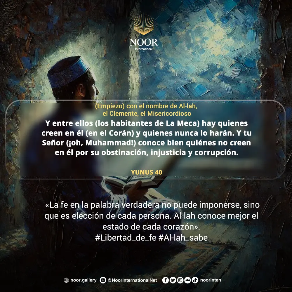 «La fe en la palabra verdadera no puede imponerse, sino que es elección de cada persona. Al-lah conoce mejor el estado de cada corazón».