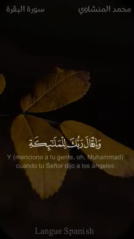 Y (menciona a tu gente, oh, Muhammad) cuando tu Señor dijo a los ángeles: «Voy a establecer en la tierra a generaciones de hombres que se sucederán». Estos dijeron: «¿Vas a poner en ella a quienes la corrompan y derramen sangre mientras que nosotros Te glorificamos con alabanzas y Te santificamos?». (Al-lah)respondió: «Yo sé lo que vosotros ignoráis».