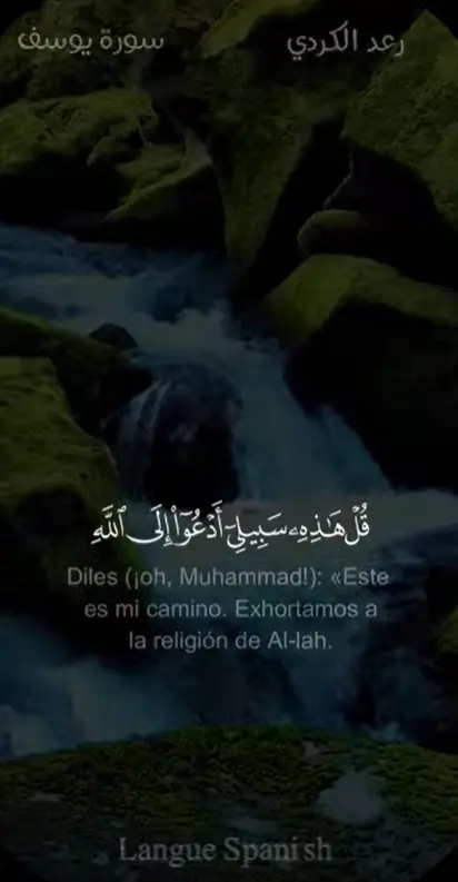 Diles (¡oh, Muhammad!): «Este es mi camino. Tanto yo como quienes me siguen exhortamos a la religión de Al-lahcon pruebas firmes. ¡Glorificado sea Al-lah! Y yo no soy de los idólatras».
