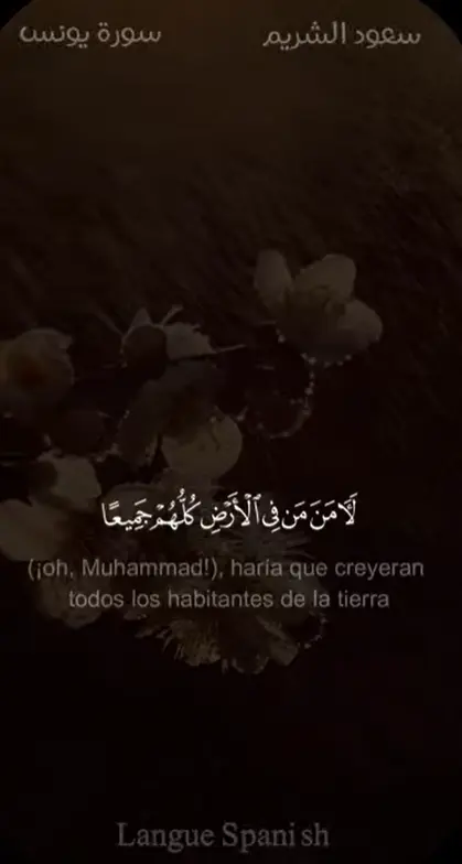 Y si tu Señor quisiera (¡oh, Muhammad!), haría que creyeran todos los habitantes de la tierra[1]. Pero tú no puedes obligar a la gente a aceptar la fe.