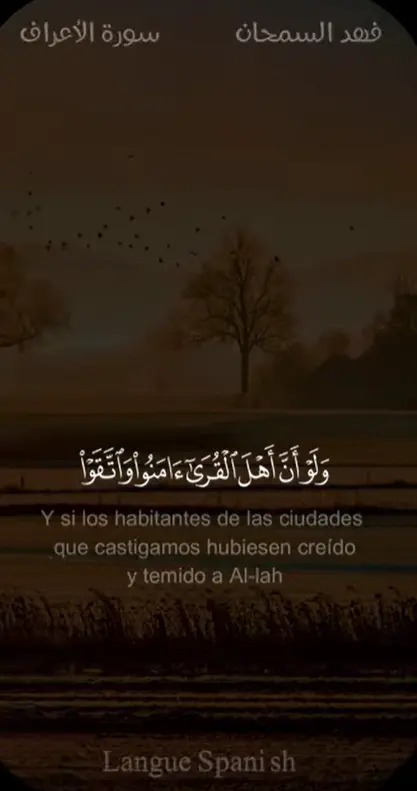 Y si los habitantes de las ciudades que castigamos hubiesen creído y temido a Al-lah, les habríamos concedido las bendiciones del cielo y de la tierra; pero desmintieron (a Nuestros mensajeros) y los castigamos por lo que cometieron.