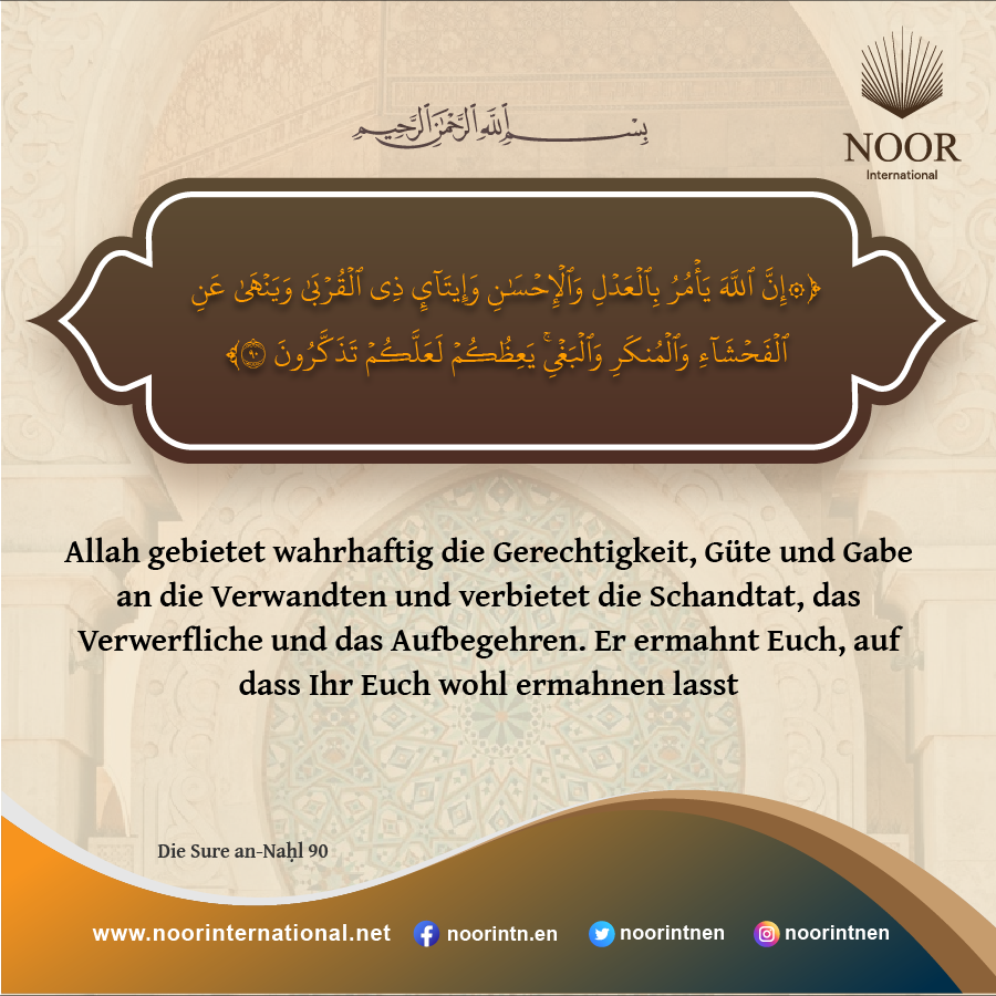 Allah gebietet wahrhaftig die Gerechtigkeit, Güte und Gabe."