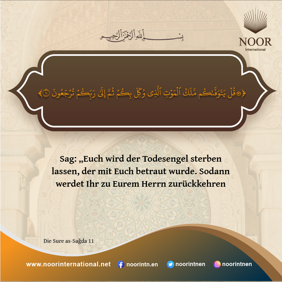 Sag: „Euch wird der Todesengel sterben lassen, der mit Euch betraut wurde. Sodann werdet Ihr zu Eurem Herrn zurückkehren