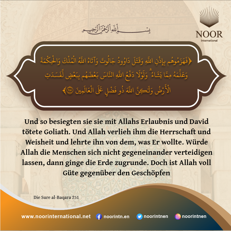 Und so besiegten sie sie mit Allahs Erlaubnis und David tötete Goliath.