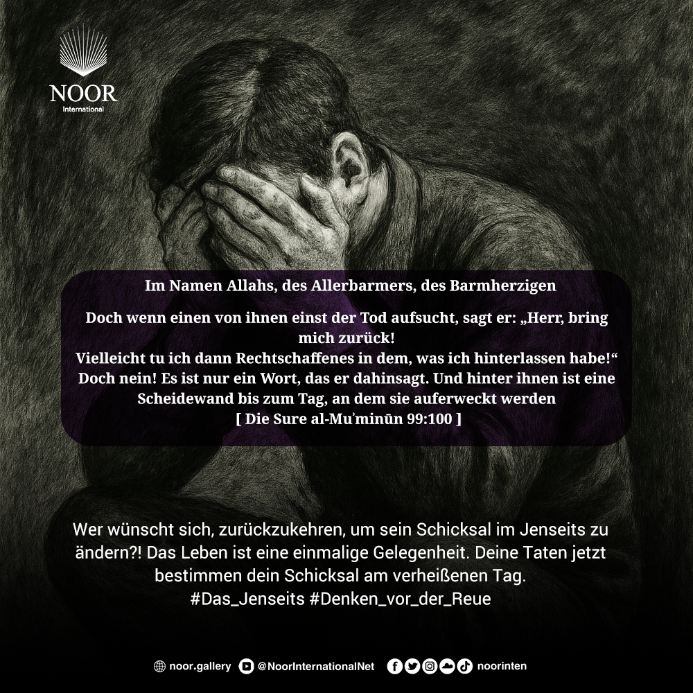 Wer wünscht sich, zurückzukehren, um sein Schicksal im Jenseits zu ändern?! Das Leben ist eine einmalige Gelegenheit. Deine Taten jetzt bestimmen dein Schicksal am verheißenen Tag. #Das_Jenseits #Denken_vor_der_Reue