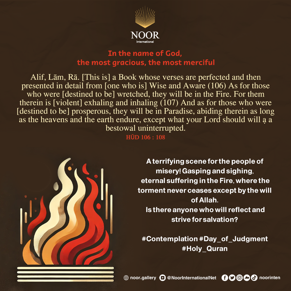 A terrifying scene for the people of misery! Gasping and sighing, eternal suffering in the Fire, where the torment never ceases except by the will of Allah. Is there anyone who will reflect and strive for salvation? #Contemplation #Day_of_Judgment #Holy_Quran