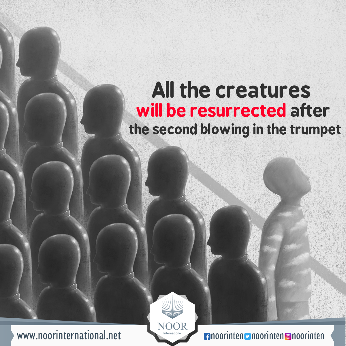 Once the horn is blown for the resurrection, all the creatures will come out of the graves, hurry to meet their Lord and then they will be reckoned and rewarded.