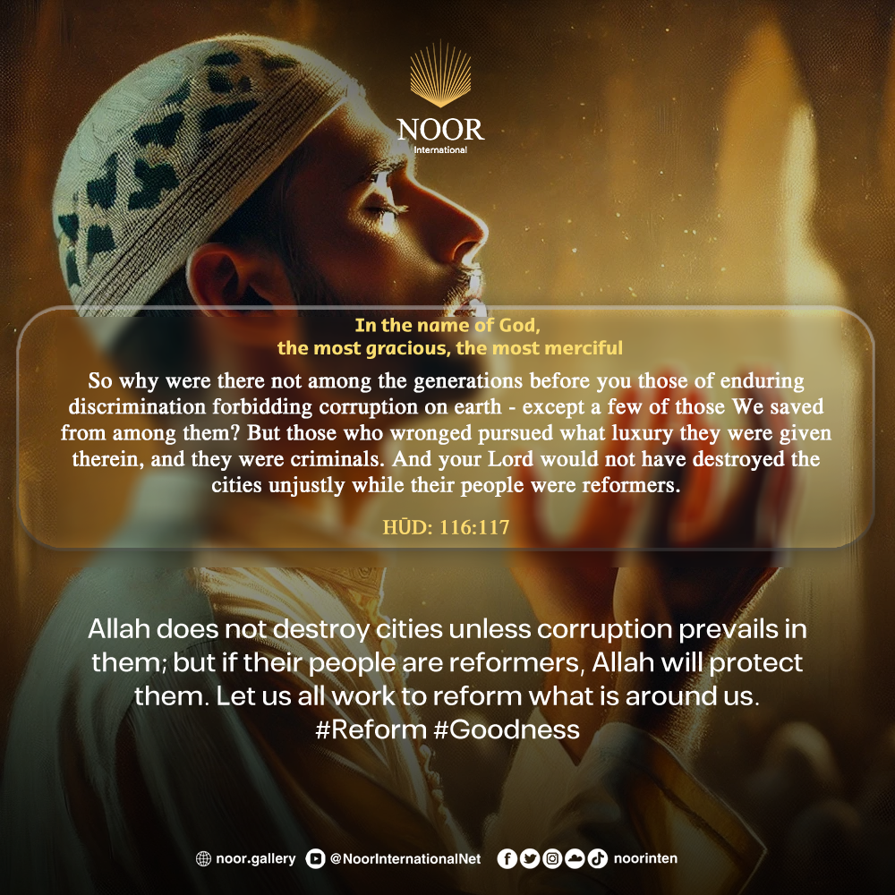"Allah does not destroy cities unless corruption prevails in them; but if their people are reformers, Allah will protect them.
