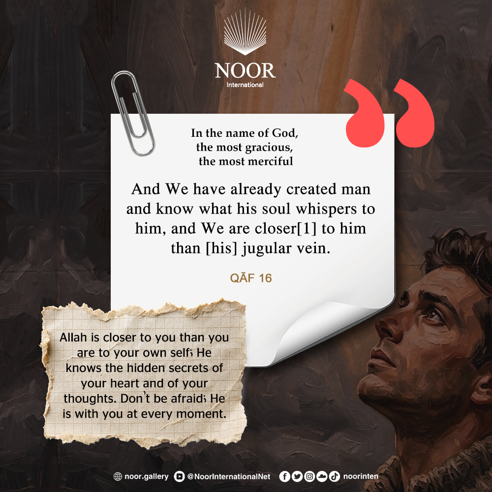 Allah is closer to you than you are to your own self; He knows the hidden secrets of your heart and of your thoughts. Don't be afraid; He is with you at every moment.