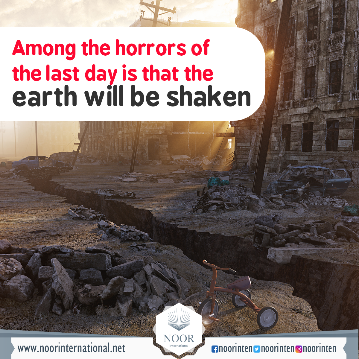 The earth will be shaken severely. You will see the mountains crumbling before your eyes, until they become dust flying in the air, at which time the resurrection will take place.