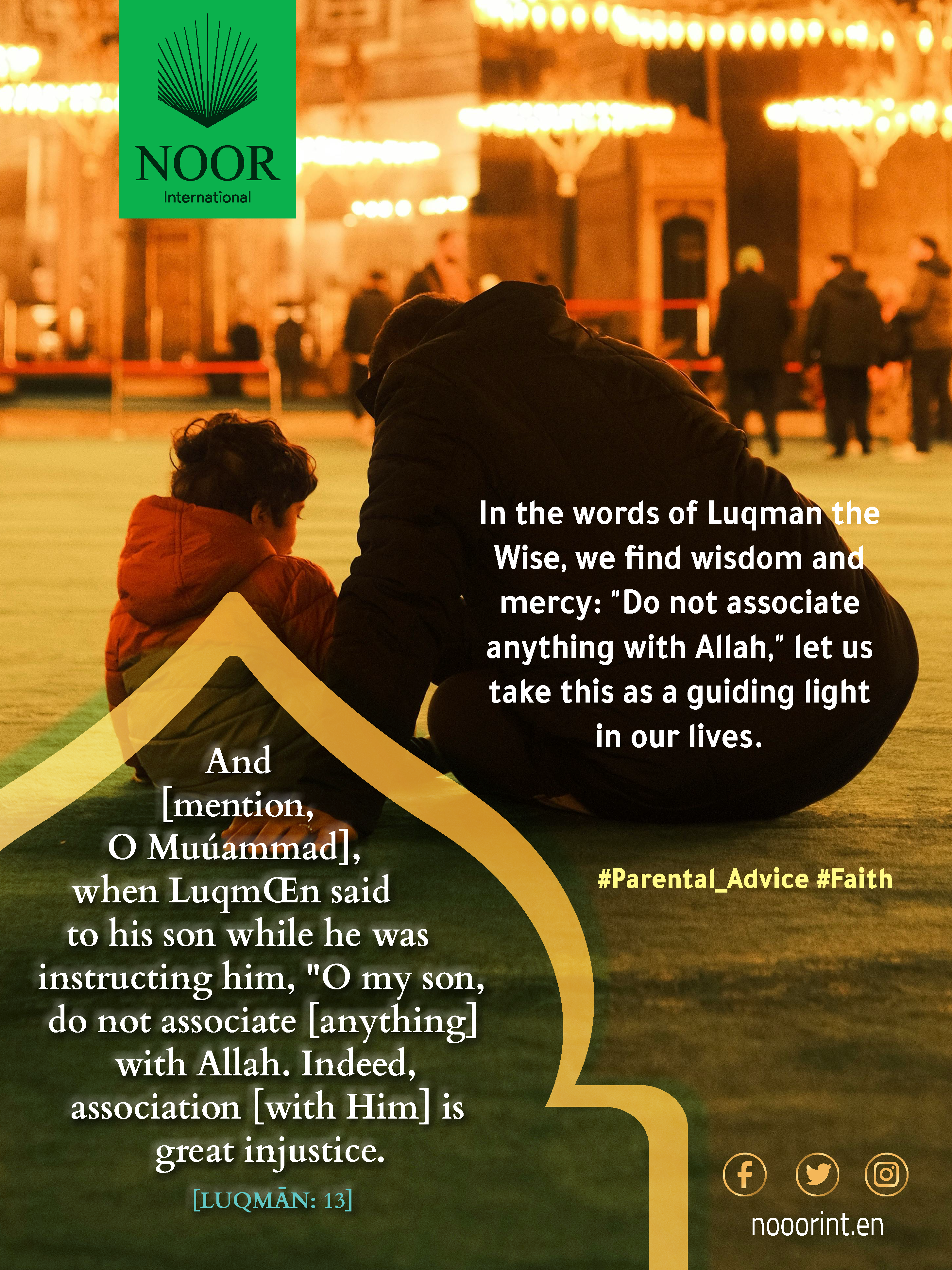 In the words of Luqman the Wise, we find wisdom and mercy: "Do not associate anything with Allah," let us take this as a guiding light in our lives. #Parental_Advice #Faith