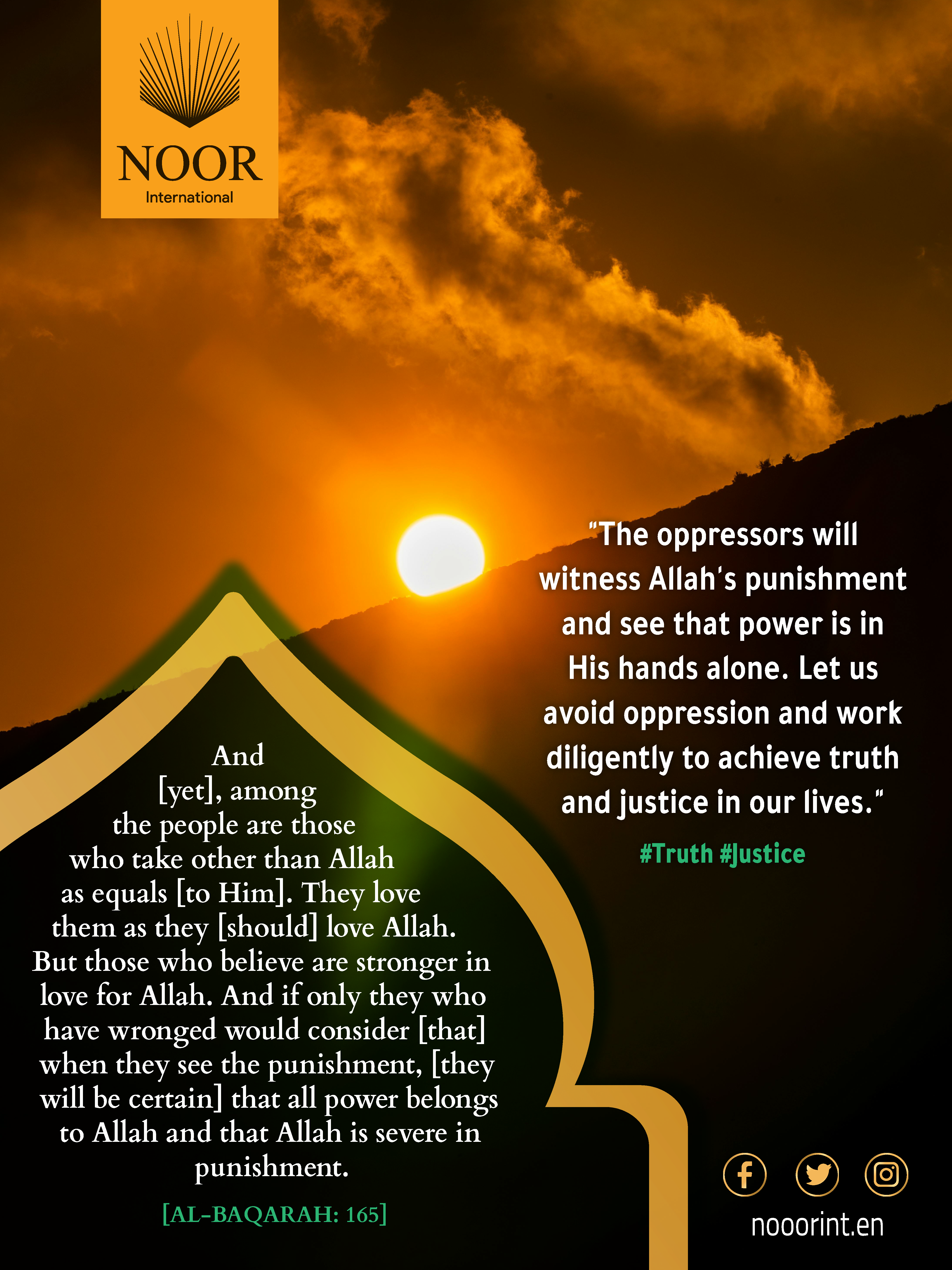 "The oppressors will witness Allah's punishment and see that power is in His hands alone. Let us avoid oppression and work diligently to achieve truth and justice in our lives." #Truth #Justice
