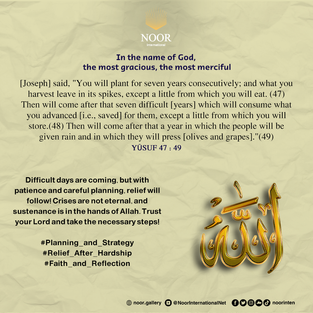 Difficult days are coming, but with patience and careful planning, relief will follow! Crises are not eternal, and sustenance is in the hands of Allah. Trust your Lord and take the necessary steps! #Planning_and_Strategy #Relief_After_Hardship #Faith_and_Reflection