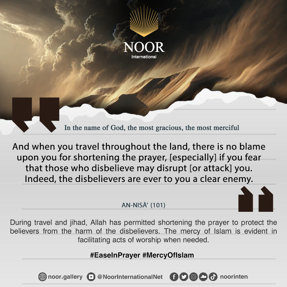 "During travel and jihad, Allah has permitted shortening the prayer to protect the believers from the harm of the disbelievers. The mercy of Islam is evident in facilitating acts of worship when needed." #EaseInPrayer #MercyOfIslam
