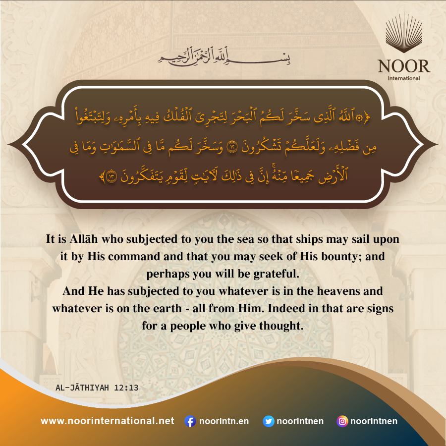 It is Allah who subjected to you the sea so that ships may sail upon it by His command and that you may seek of His bounty; and perhaps you will be grateful.