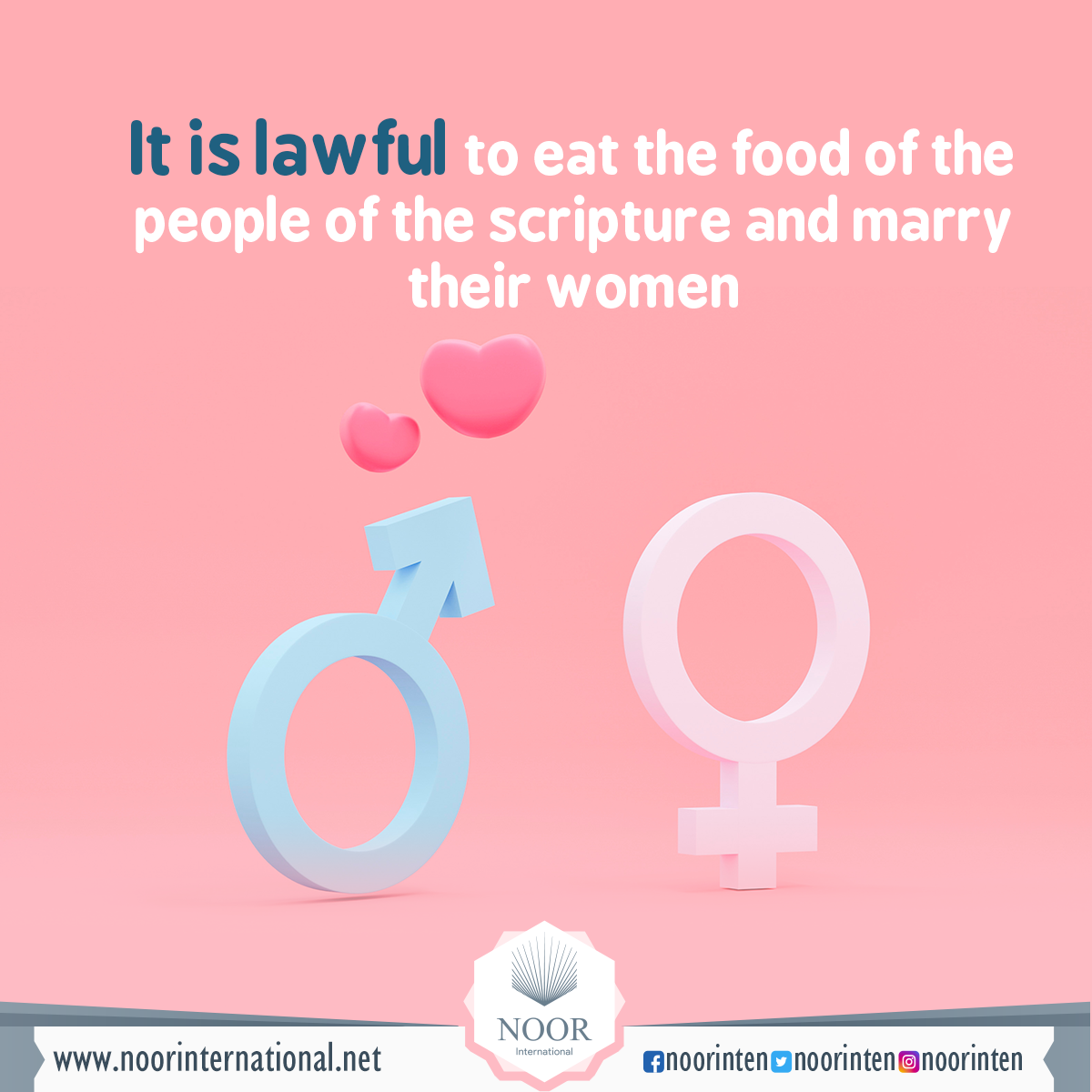 It is lawful to eat the food of the people of the scripture and marry their women.