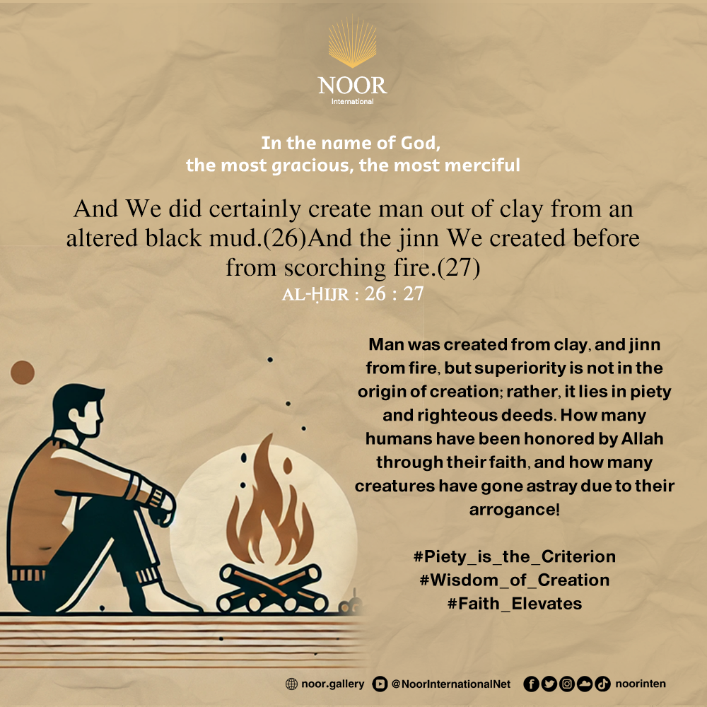 Man was created from clay, and jinn from fire, but superiority is not in the origin of creation; rather, it lies in piety and righteous deeds. How many humans have been honored by Allah through their faith, and how many creatures have gone astray due to their arrogance!