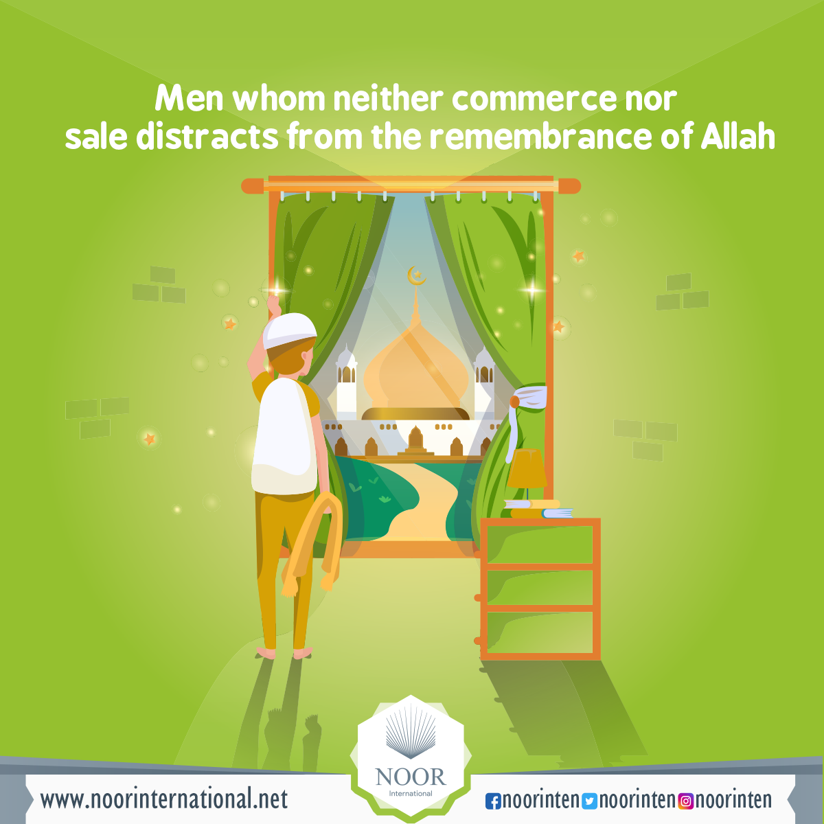 { [Are] men whom neither commerce nor sale distracts from the remembrance of Allah and performance of prayer and giving of zakāh. They fear a Day in which the hearts and eyes will [fearfully] turn about - That Allah may reward them [according to] the best of what they did and increase them from His bounty. And Allah gives provision to whom He wills without account [i.e., limit]. }