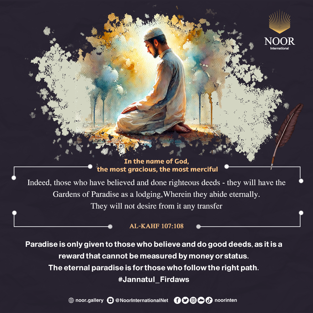 Paradise is only given to those who believe and do good deeds, as it is a reward that cannot be measured by money or status.