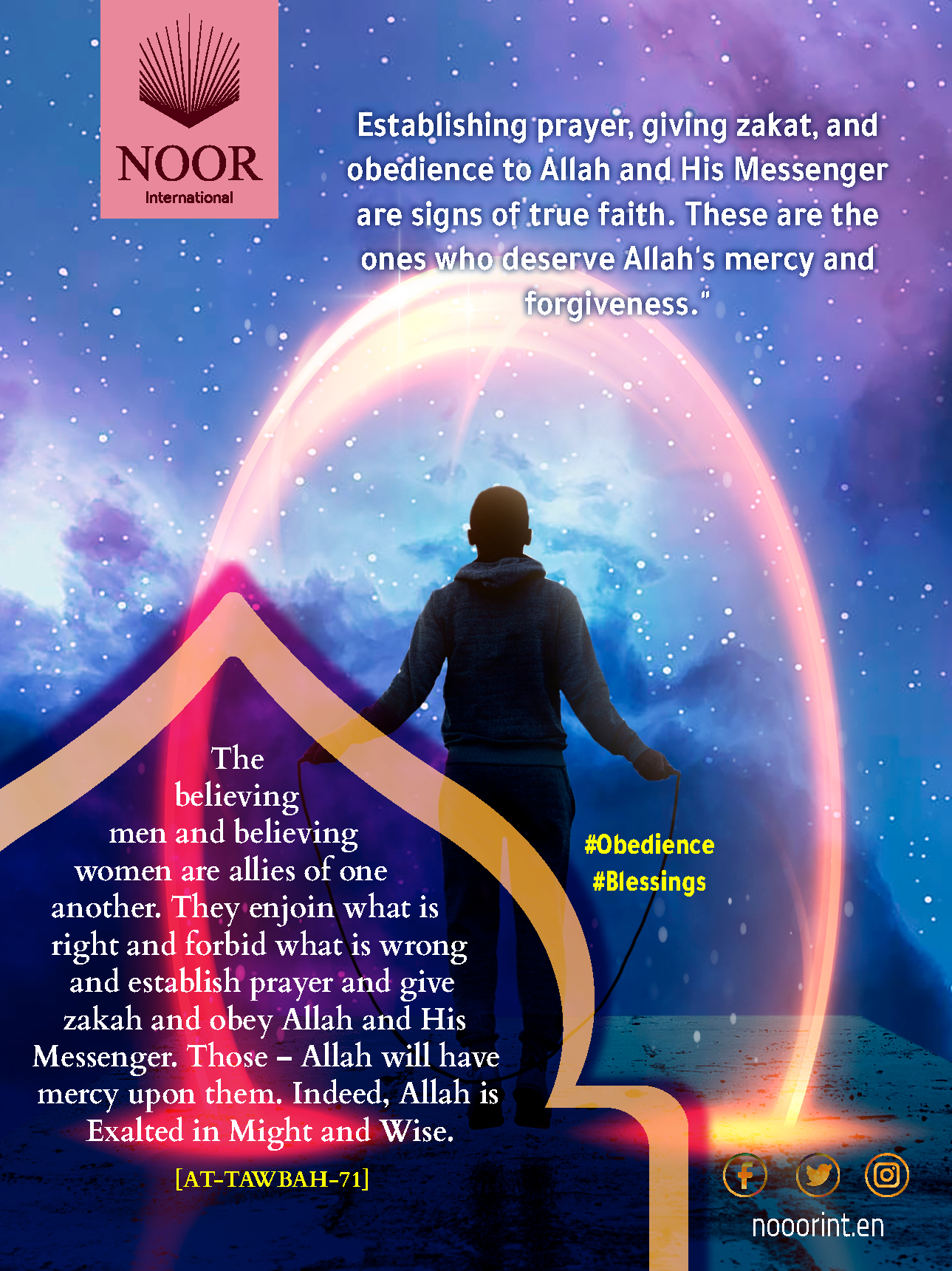 "Establishing prayer, giving zakat, and obedience to Allah and His Messenger are signs of true faith. These are the ones who deserve Allah's mercy and forgiveness." #Obedience #Blessings