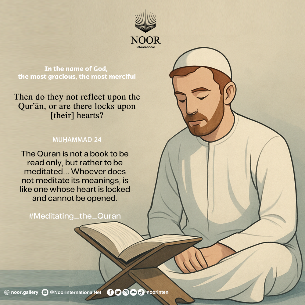 The Quran is not a book to be read only, but rather to be meditated... Whoever does not meditate its meanings, is like one whose heart is locked and cannot be opened.