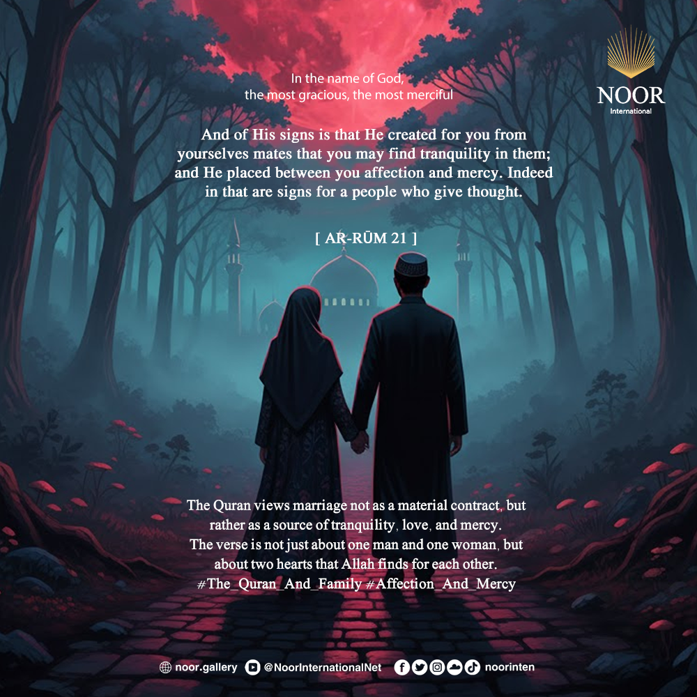 The Quran views marriage not as a material contract, but rather as a source of tranquility, love, and mercy.