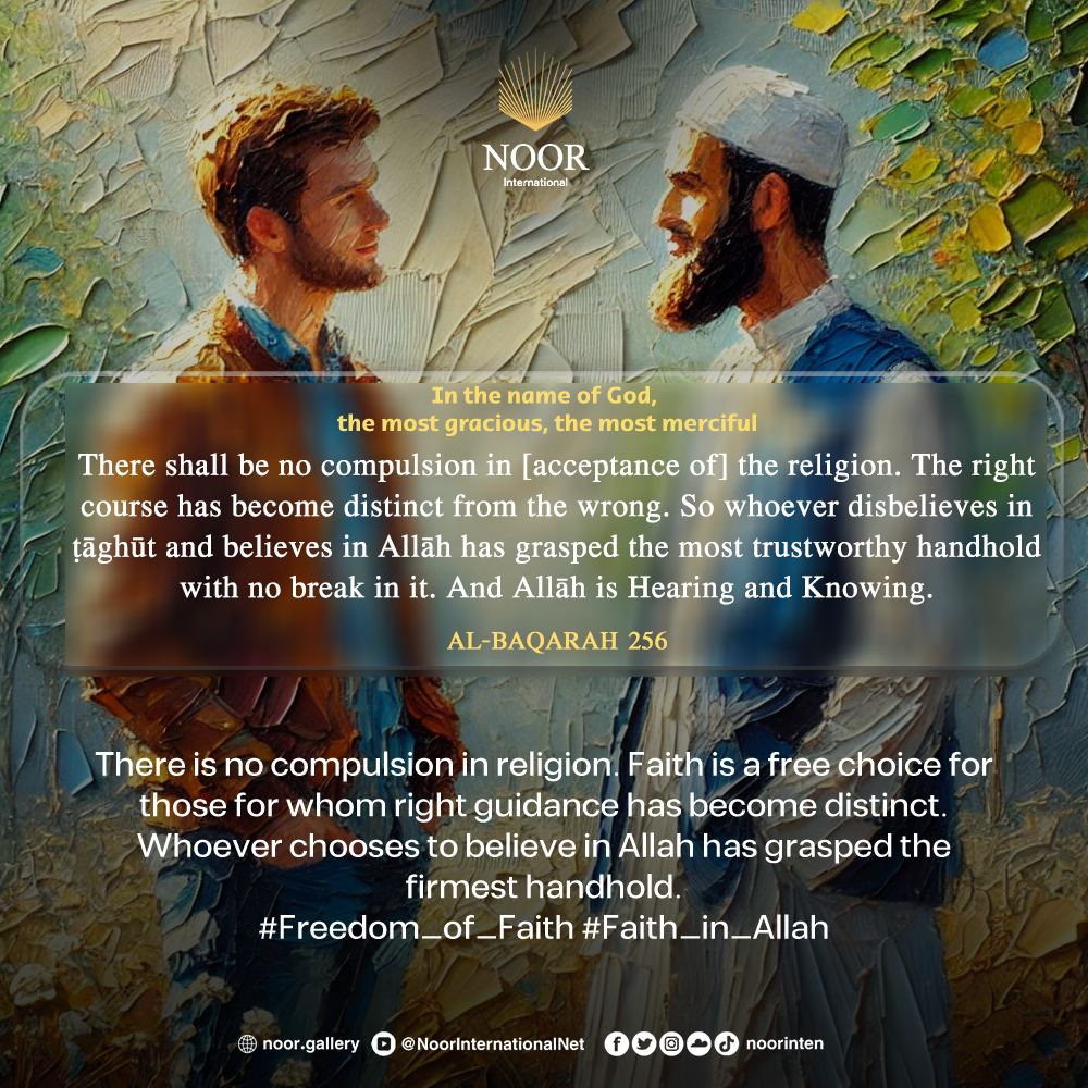 "There is no compulsion in religion. Faith is a free choice for those for whom right guidance has become distinct.