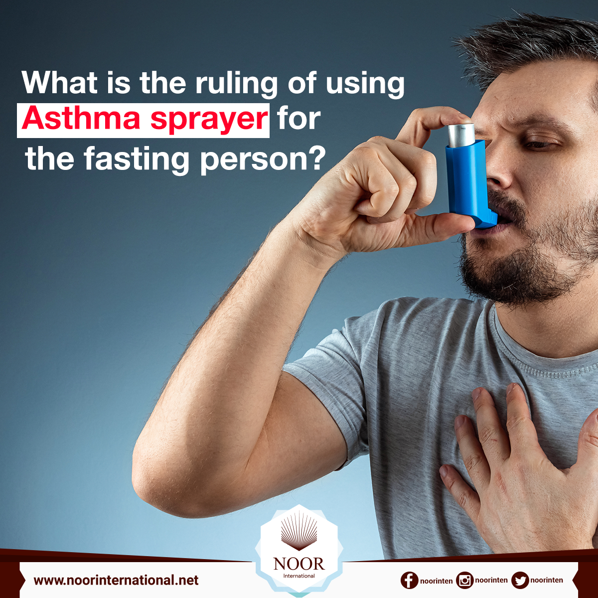 The correct view is that his fasting is not nullified because of using the Asthma sprayer because it evaporates and it does not reach the stomach. According to this view, the two sheikhs, Abd al-Aziz bin Baz and Muhammad ibn Uthaymeen, may Allah have mercy on them, used to issue the fatwas according to this opinion.